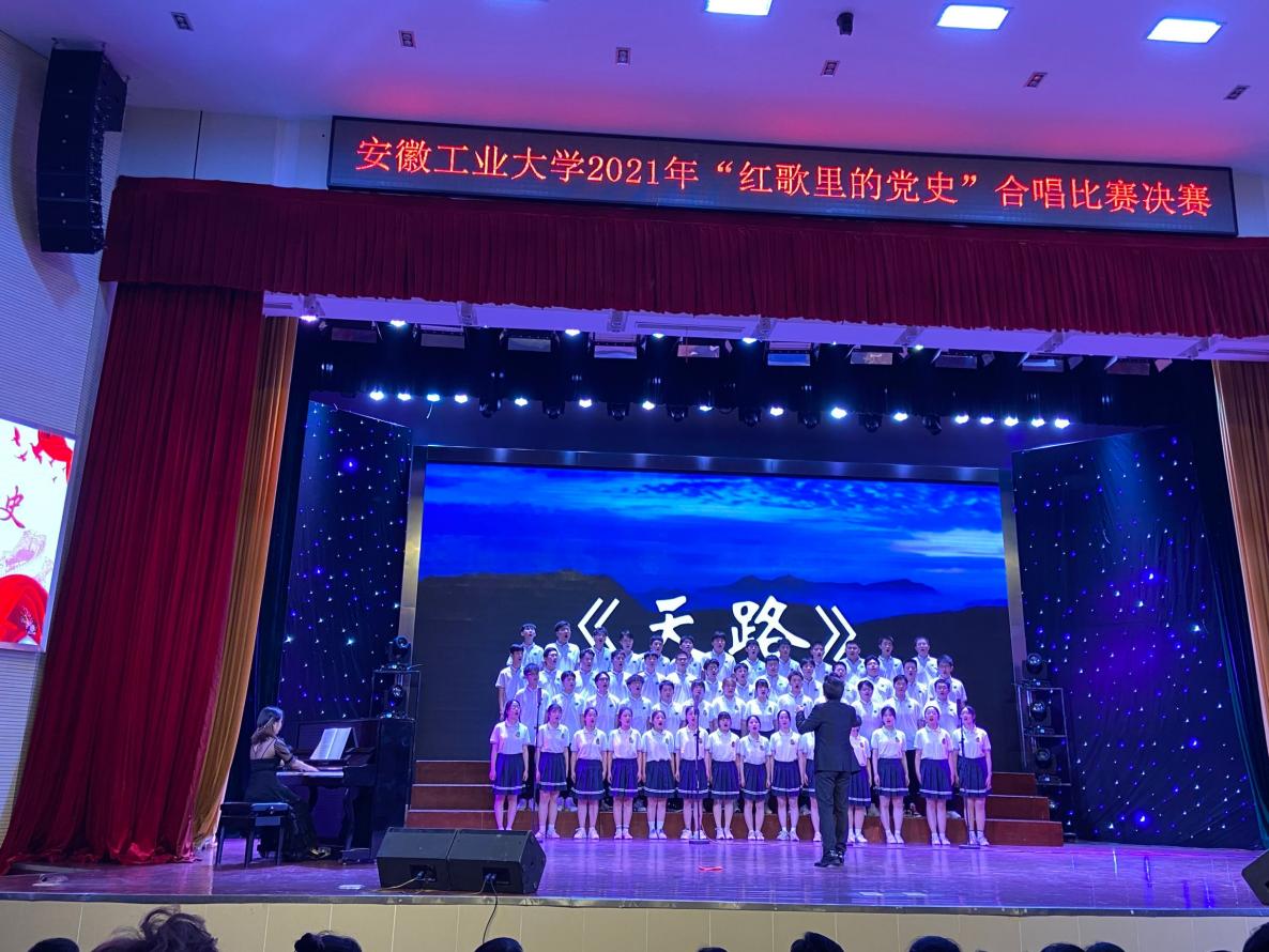 在学唱活动的班级选拔赛中,各年级员工踊跃报名,积极参与,共计4600人次参加排练和比赛。院赛环节《我的祖国》《红旗颂》《天耀中华》等一首首耳熟能详的红歌在会场飘荡,深深感染了每一位观众。在此基础上,公司从460余名参赛员工中选拔组建了一支55人的合唱队,经历时一个月的精心排练,在老师的精心指导下,院合唱队以一首《天路》惊艳全场,取得了校赛二等奖的好成绩。