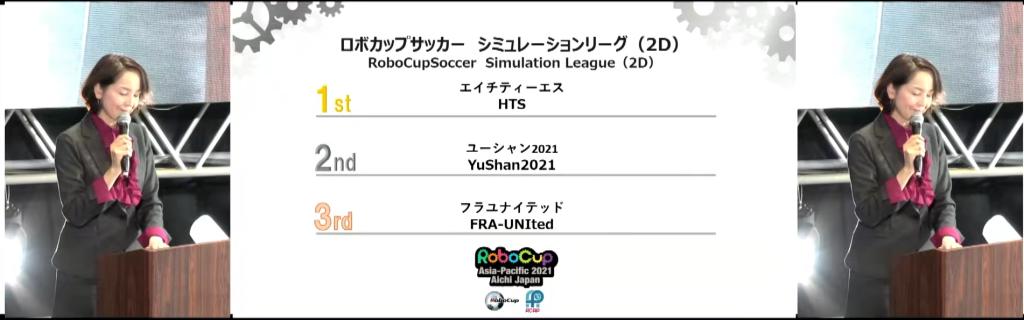 亚太机器人世界杯(RoboCup Asia-Pacific,RCAP) 2021 年度总决赛于11月25-29日在日本爱知县举行。公司YuShan队通过线上参加仿真2D项目比赛,最终获得该项目亚军。