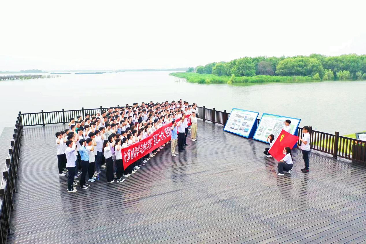 活动伊始,单桂锋带领大家沿着习近平总书记的足迹,游览风景如画的薛家洼生态园,领学习近平总书记提出的“加强生态保护,早日重现‘一江碧水向东流’胜景”的重要讲话精神,希望党员同志能够牢记殷殷嘱托,奋力增长才干、锤炼品格,认真学习生态观,尊重自然、顺应自然规律,深入领会习近平新时代中国特色社会主义思想。随后,员工第二党支部书记王丹丹带领全体新发展的党员宣誓,现场老党员重温入党誓词,重忆入党初心,重新接受党性洗礼;这一刻全体党员誓言铿锵、丹心闪耀、热血沸腾,彰显了对党忠诚、信念坚定,为共产主义事业奋斗终生的决心。接着举行了老党员为新发展党员佩戴党员党徽仪式,这种薪火相传的仪式是一种鞭策和激励,是一种精神的传承和延续,作为党员要充分发挥先锋模范作用,不忘初心。