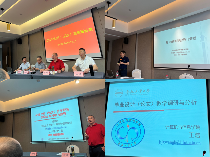 8月7-10日,公司副经理程泽凯、计算机科学技术系副主任陆勤、物联网工程系副主任卫琳娜参加了安徽省高校信息类专业“2023毕业设计(论文)高级研修班”。程泽凯应邀做《专业认证背景下本科毕业设计教学规范研究与实践》主题报告。