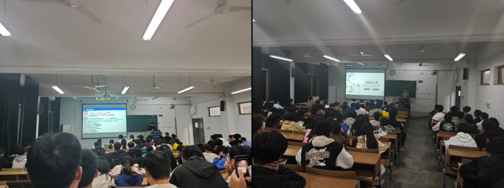 张辉结合自己在本科期间学习、科研及学科竞赛以及保研历程,向同学们分享了大学学习需要具备的心态、学习技巧以及各个阶段应当关注的重点等。并引导同学们要注重基础课的学习。范明旭就自己在本科期间的学习与生活以及保研历程,向同学们分享了如何平衡学习和生活,以及怎样培养自己的兴趣爱好、明确自己的学习目标。