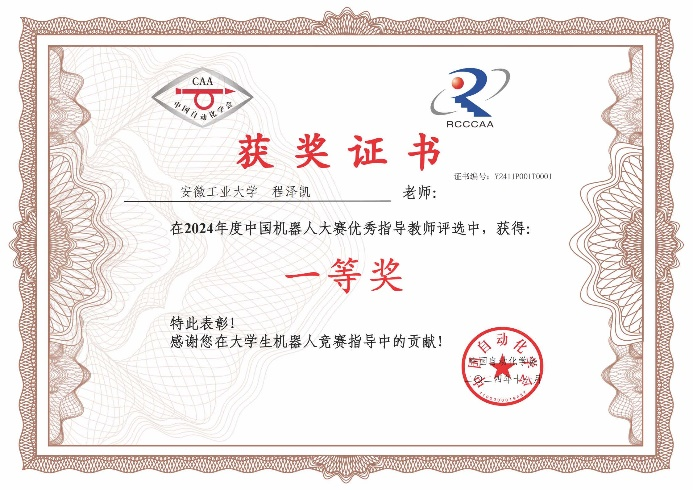 11月29日-12月2日,2024年度机器人科技竞赛与实践教学研讨会在珠海召开,会议期间对2024年度中国机器人大赛优秀指导教师进行颁奖,公司程泽凯获2024年度中国机器人大赛优秀指导教师一等奖荣誉,本次会议由中国自动化学会主办。公司在2024年5月举行的RoboCup中国赛获得竞赛冠军(实现该项赛事“七冠四亚一季”),及技术挑战赛冠军。在2024年7月进行的RoboCup世界杯比赛中获得季军,第5次站上国际赛场的领奖台,此外还获得中国赛二等奖1项,伊朗公开赛冠军,安徽省机器人大赛二等奖。