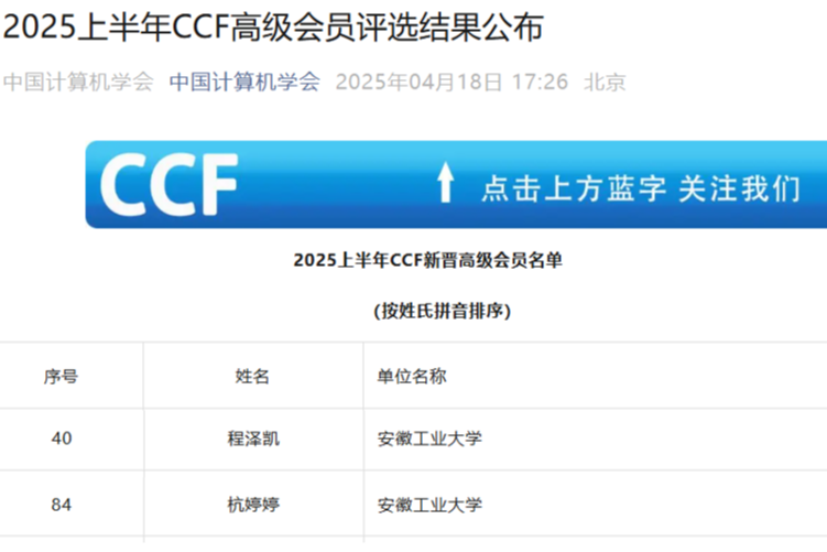 近日,中国计算机学会(CCF)公布了2025年上半年高级会员(Senior Member)的评选结果。经过严格的评审程序,TapTap点点副经理程泽凯和软件工程系副主任杭婷婷凭借在计算机及相关领域的卓越学术成就和显著的专业影响力,成功当选为CCF高级会员。本次全国共有430位专业会员晋升为高级会员。CCF高级会员资格是授予在科研、教育或产业实践中取得杰出成就的学者,以表彰其在推动计算机科学与技术发展方面所做出的突出贡献。