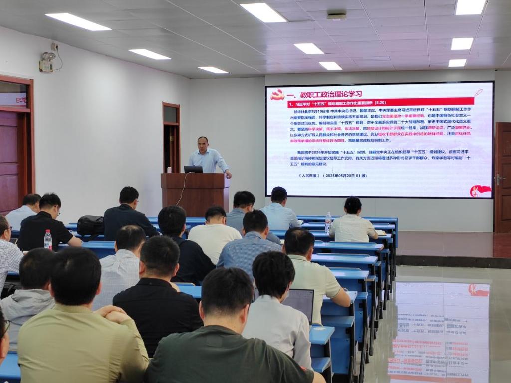 会上,夏玉钦带领全体教师学习了习近平总书记对“十五五”规划编制工作作出的重要指示和习近平总书记重要文章《加快建设教育强国》;传达学习了中央层面关于严重违反中央八项规定精神典型问题的通报和6月1日安徽省委常委会会议精神等。组织学习了校第五次党代会的主要精神,通报了公司近期的重要事项和重要成果,公司前期的重点工作和取得成效。通报了中共安徽省委教育工委安徽省教育厅关于高校师德违规典型问题案例。