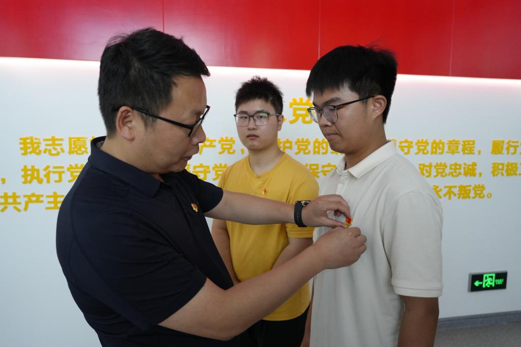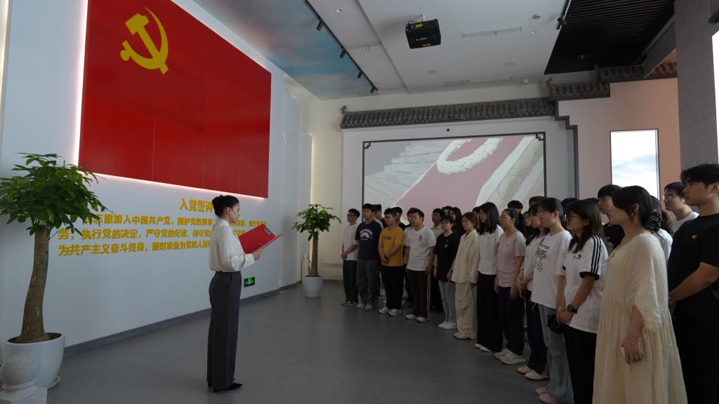 参观结束后,公司2025年上半年新发展党员入党宣誓仪式在庄严的《国际歌》中拉开帷幕。公司党委宣读了新发展党员名单,院领导班子为新发展党员佩戴党员徽章。随后,在领誓人林颖的带领下,全体新、老党员面向鲜红的党旗,举起右手,握拳过肩,以洪亮而坚定的声音宣读入党誓词。宣誓结束后,新党员代表吴海洋深情发言:“从今日起,我们将以党员标准严格要求自己,不断提高自身综合素质,发挥先锋模范作用,用实际行动践行初心!”老党员代表罗思立结合自身成长经历,分享了成长感悟,希望新党员坚定理想信念,提高政治站位,牢记初心使命,关心关爱同学。最后,公司党委副书记徐晓寒对全体新党员表示祝贺,并提出了三点要求。一要深学细悟,筑牢信仰之基,做理论学习的“先行者”。二要牢记身份,强化责任担当,做党员意识的“践行者”。三是知行合一,勇担时代使命,做先锋模范的“示范者”。