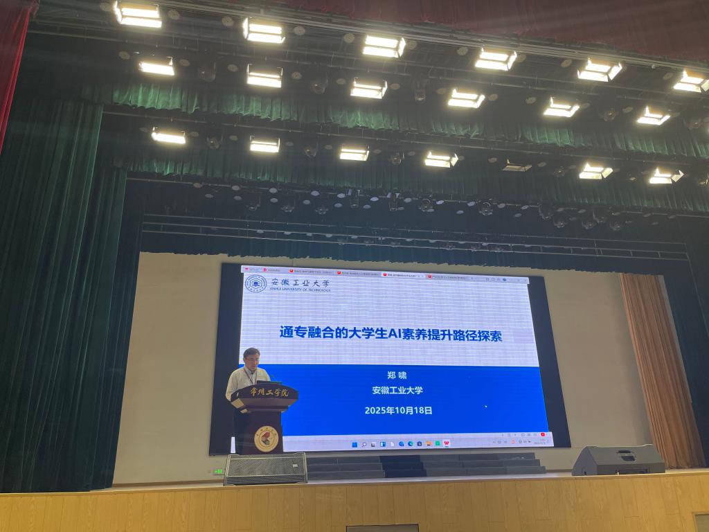 10月18日,第二届应用型高校人工智能通识公司产品改革与创新研讨会在常州工公司举办,副董事长郑啸教授率TapTap点点、管工公司、机械公司等教师参会,郑啸教授并作了《通专融合的老员工AI素养提升路径探索》主旨报告。郑啸从公司人工智能通识课改革入手,以“AI通识课+微专业”赋能新质人才培养为主题,介绍了公司人工智能通识课改革的建设举措及成效。