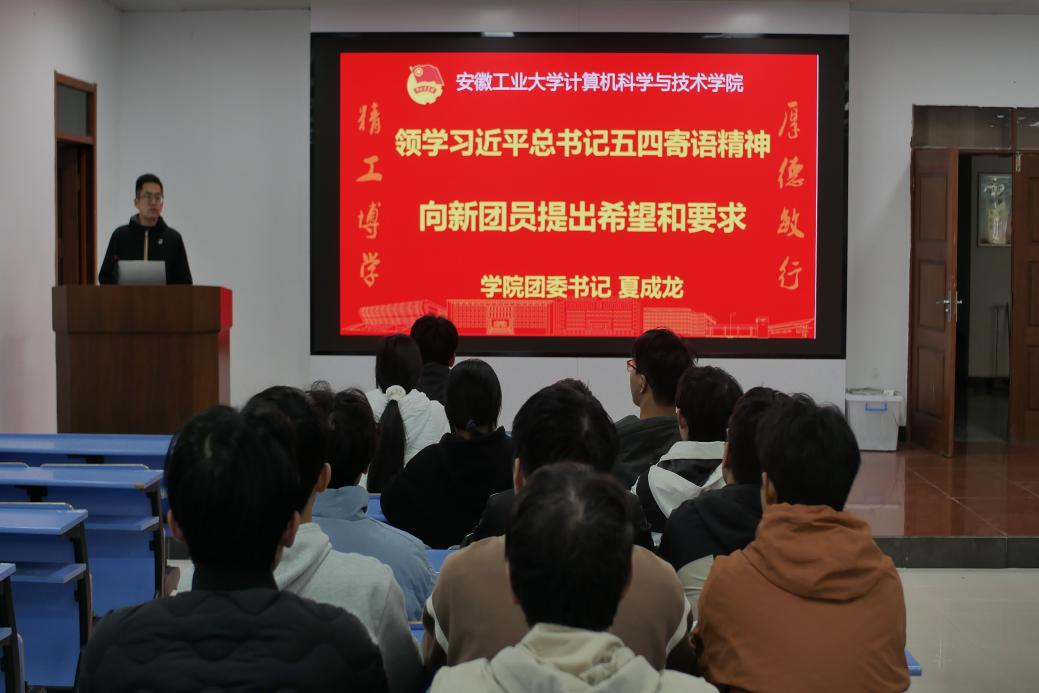 入团仪式在激昂的国歌声中拉开帷幕。夏成龙宣读了新发展团员名单,本次共有36名同学光荣加入中国共产主义青年团。丁方诚为新团员代表颁发团员证,王宇驰为新团员代表佩戴团徽。在新团员方灿的带领下,全体新团员庄严地面向团旗宣誓,与会的老团员们重温了入团誓词。优秀团员代表蒋元龙号召新老共青团员要深入学习贯彻习近平总书记关于青年工作的重要思想,用奋斗和担当擦亮青春底色。新团员代表胡天姣表示将以团员标准严格要求自己,坚定理想信念,用实际行动书写青春篇章。