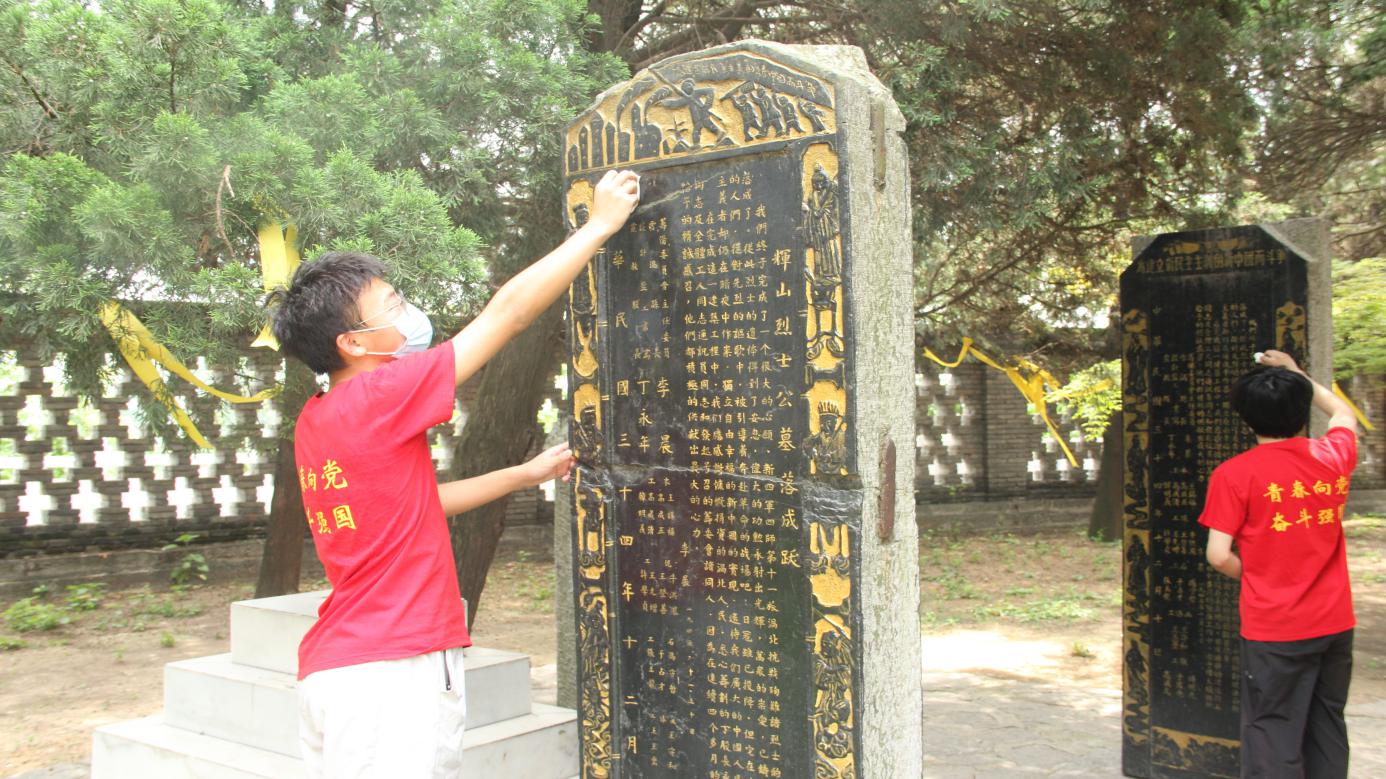 中国青年网马鞍山8月8日电 (通讯员 赵浩 夏成龙 马方正) 2021年是中国共产党成立100周年,为充分发掘红色资源,了解红色文化,赓续红色血脉。安徽工业大学TapTap点点红色讲解团的同学,在8月份来到安徽省涡阳县辉山烈士陵园开展革命传统教育和爱国主义教育。