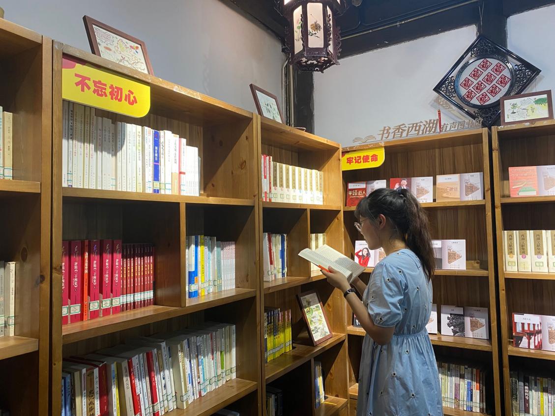 实践队员吴禧龙参观红色经典著作墙,他说到:“在党的百年华诞之际,我们每一位预备党员都要重温入党誓词、重忆入党经历、重问入党初心——对自己从外到内、从工作到思想、从生活方式到理想信念,来一次彻底的灵魂拷问,来一次全面大体检。”