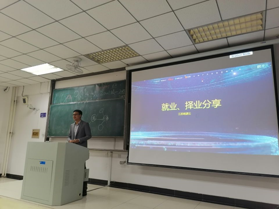 张曦以“择业就业分享”为题,从如何选择工作、职场所需能力和职场进阶模型等三个方面,结合自身工作经历,希望同学们不断分析自身优劣势,尽早作出基于自知的清晰的职业发展规划,无论考研还是求职,最好养成读书、运动、及时反馈和复盘的好习惯,打好专业基础知识,训练结构化思维,了解职场需求,尽早适应社会,在奉献中实现自身价值,就薪酬构成、职场进阶等与同学们进行了现场交流。
