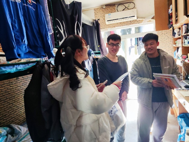 在深入图书馆和宿舍慰问的过程中,林颖了解了当前考研员工的考研状态、心理动态、生活状况等方面情况,对准备最后冲刺的考研学子表达了深切的慰问和期望,鼓励同学们要坚守初心、坚定信心、下定决心。林颖从自身经验出发,对考研学子提出了三点要求:一要遵纪守法、诚信应考。维护考试的公平性和严肃性,确保考试的公正、平稳、有序;二要坚定信心、高度重视。坚持冲刺到最后一刻,严肃认真对待、始终如一答题、练就平稳心态;三要调整状态、劳逸结合。考研是专业知识、自身意志力、心理调节能力的综合应考,保持良好的状态是考研成功的基石。最后辅导员联合各班班长给同学们发放了考研慰问品和考研加油卡片,衷心的祝愿同学们能够一战成硕,踏上梦想的彼岸。同学们收到考研慰问品时的笑容皆溢于言表,纷纷感谢公司领导、老师对考研学子的关怀,并承诺会带着这份温暖祝福进入考场,努力迎接研考,不负期待、不负韶光。