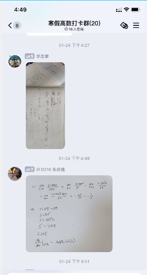 为给员工营造营造浓厚的学习氛围,针对学业困难员工,各年级推出“线上打卡计划”,重点科目建立打卡群,为员工在群里分享详尽的学习资料,引导员工合理规划寒假作息和自主学习时间,按时学习任务。鼓励员工积极交流问题,带动群中学习氛围。