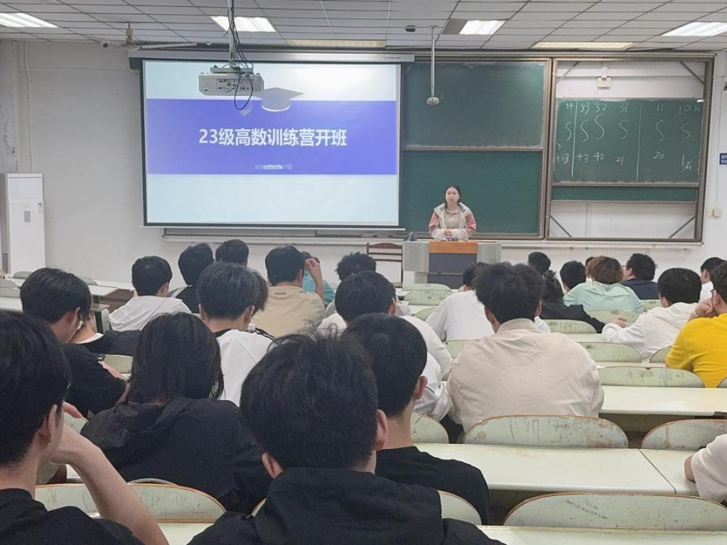 2020级学长李晓强鼓励学弟学妹们从现在开始认真学习高数,考研备考时就能游刃有余,做到心中有底气。2023级员工方浩宇同学在《高等数学A1》考试中取得91分的优异成绩。开班式上,方浩宇就课堂学习、课外学习、错题整理三个方面分享了自身高数学习的宝贵经验。辅导员朱筱对训练营课程安排、训练目的、训练纪律等做了详细介绍。