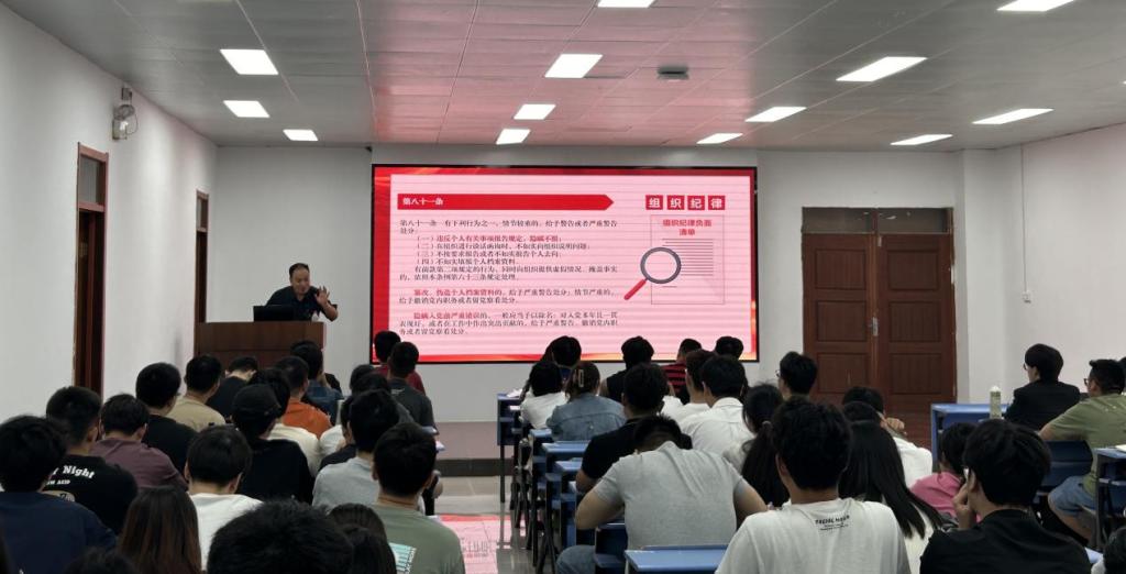 活动伊始,全体党员面向党旗、庄严肃立,重温入党誓词,誓言铿锵、声声入耳。紧接着韩军书以《学纪 知纪 明纪 守纪 始终做到忠诚干净担当》为题,从通知要求、如何认识、内容解读三个方面,为全体党员讲授专题党课。韩军书指出,开展党纪学习教育是以习近平同志为核心的党中央作出的重大决策部署,是加强党的纪律建设、推动全面从严治党向纵深发展的重要举措。深学细研新修订的《中国共产党纪律处分条例》,将其作为重要政治任务,以严明的纪律推进党的自我革命,提升政治素养和拒腐防变能力,做到学纪、知纪、明纪、守纪,搞清楚党的纪律规矩是什么,弄明白能干什么、不能干什么,把遵规守纪内化于心、外化于行,增强政治定力、纪律定力、道德定力、抵腐定力,守住纪律“底线”、不越“红线”,始终做到忠诚干净担当。