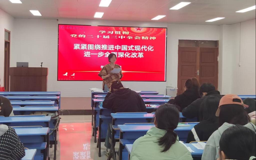 林颖以《紧紧围绕推进中国式现代化进一步全面深化改革》为题,从深刻认识党的二十届二中全会以来党和国家事业取得的重大成就、深刻认识全会主题、深刻认识进一步全面深化改革的重要性和必要性、深刻认识进一步全面深化改革的重大原则等方面,结合典型案例,对党的二十届三中全会精神进行宣讲。她指出,全会提出的一系列新思想、新论断、新要求,是党在新时代的行动指南,对于指导我们当前和今后一个时期的学习和工作具有深远意义。林颖希望全体党员能以学习贯彻党的二十届三中全会精神为契机,将会议精神落实到学习生活中,坚持原原本本学、融会贯通学、研讨交流学、突出重点学,进一步统一思想、坚定信心、增强斗志。