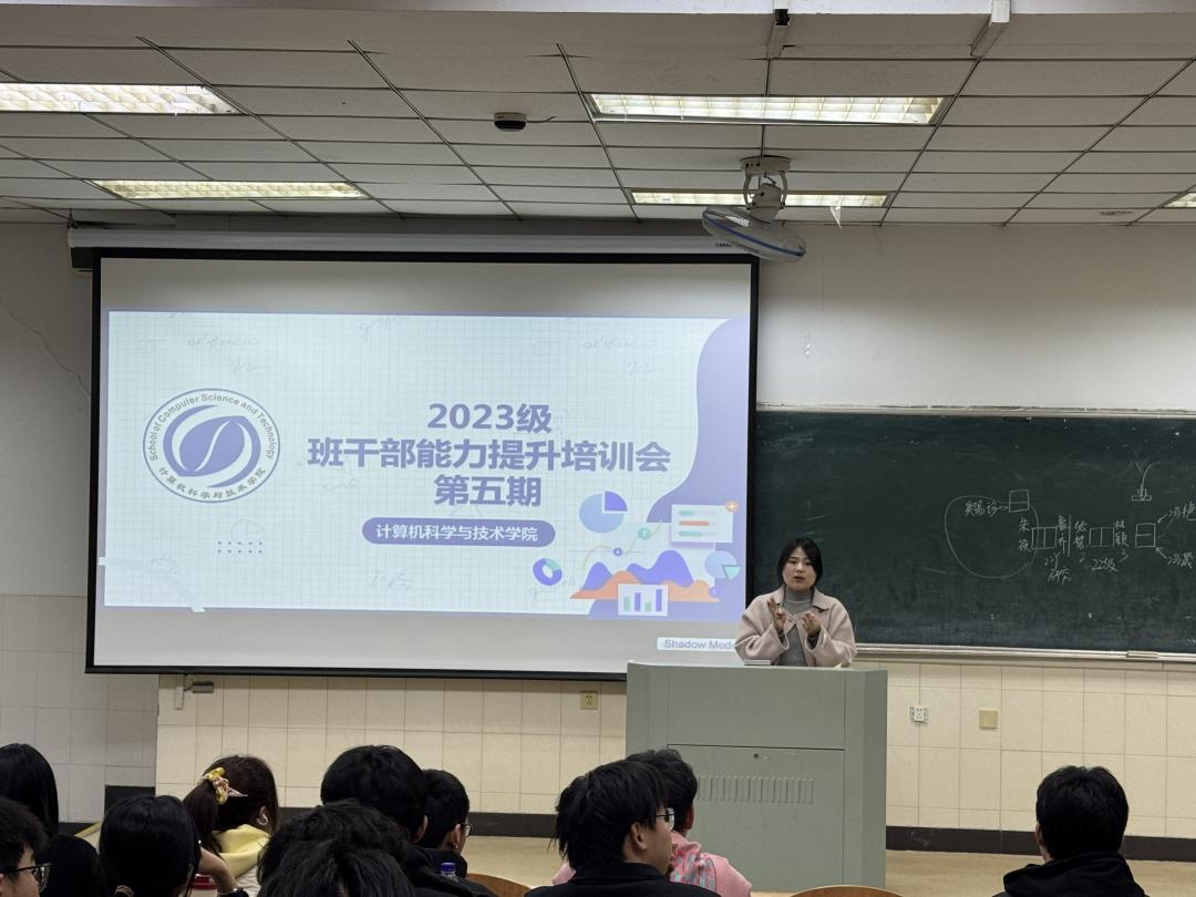奚锡珍首先强调了班干部的角色定位:在其位,谋其职,负其责,尽其事。其次围绕员工干部的思想政治素质、岗位职责、工作方法和班风建设等方面等四个方面阐述员工干部“全心全意为同学服务”的根本宗旨,深入讲解员工干部需要保持的态度和能力,详细剖析了作为员工干部应具备的沟通礼仪和表达技巧,勉励全体员工干部责任在肩、共同前行。