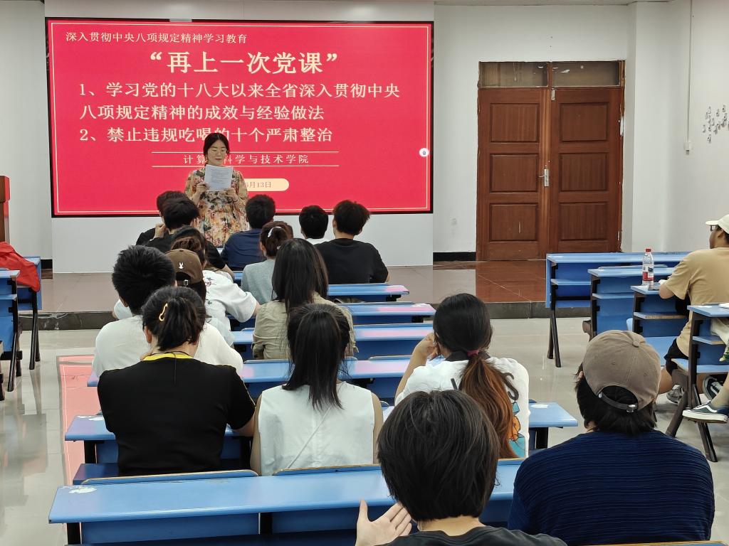 党课聚焦学习党的十八大以来全省深入贯彻中央八项规定精神学习教育的成效与经验做法,结合高校实际提出具体要求,通过回顾全省在精简会议活动、规范活动、整治“舌尖上的浪费”等方面的典型案例,强调“常抓不懈、化风成俗”的长效机制,要求党员要以案为鉴,深化作风建设。同时,传达学习了禁止违规吃喝的十个严肃整治,通报了近期典型违规违纪案例,要求全体党员严格遵守规定,树立良好党风政风。结合《中国共产党纪律处分条例》的具体条款,警示党员在未来的工作中严守纪律红线,抵制权力滥用与利益诱惑,常怀律己之心,增强廉洁意识。