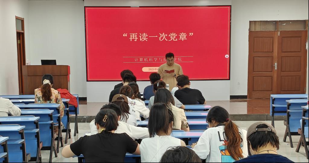 随后,与会党员集体研读《中国共产党章程》,强调党章是党员行为的根本遵循,通过再读党章,进一步加深全体党员对党的性质、宗旨和使命的认识,增强党性修养和纪律意识。在庄严肃穆的氛围中,毕业班党员崔正玉带领全体党员重温入党誓词,全体党员面向党旗庄严宣誓,表达了对党的忠诚和对共产主义事业的坚定信念,强化了组织归属感与历史使命感。