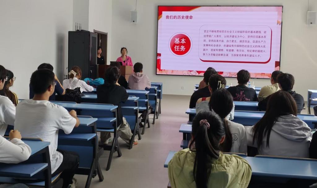 仪式在庄严的国歌声中拉开帷幕。公司分团委副书记侯皖婷宣读了新团员名单,此次共有24名新团员通过层层筛选加入共青团。随后,由优秀团员代表为新团员颁发并佩戴团徽和团员证。在团旗前,新团员们举起右拳,庄严宣誓。铿锵有力的誓言回荡在会场,表达了同学们坚定的理想信念和为共产主义奋斗终身的决心。